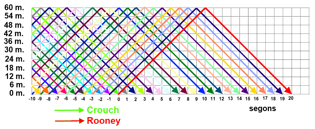 Això vol dir que Rooney no va a creuar-se amb un jugador cada segon del seu recorregut, ans que com tots dos s'estan desplaçant l'un cap a l'altre, recorreran la distància que els separa en la meitat del temps (0,5 segons) per trobar-se'n a la meitat d'aquesta distància. Així, Rooney es creuarà amb: