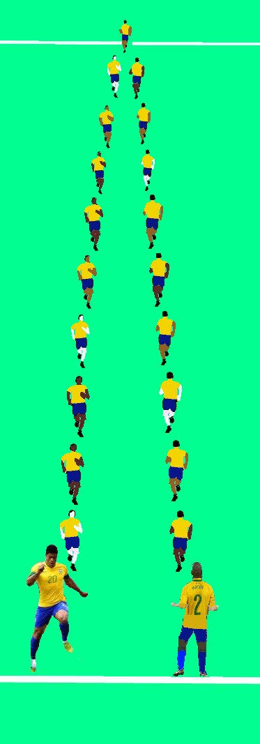 Los jugadores brasileños están corriendo de banda a banda, según las instrucciones que les ha dado el preparador físico, y que son las siguientes: